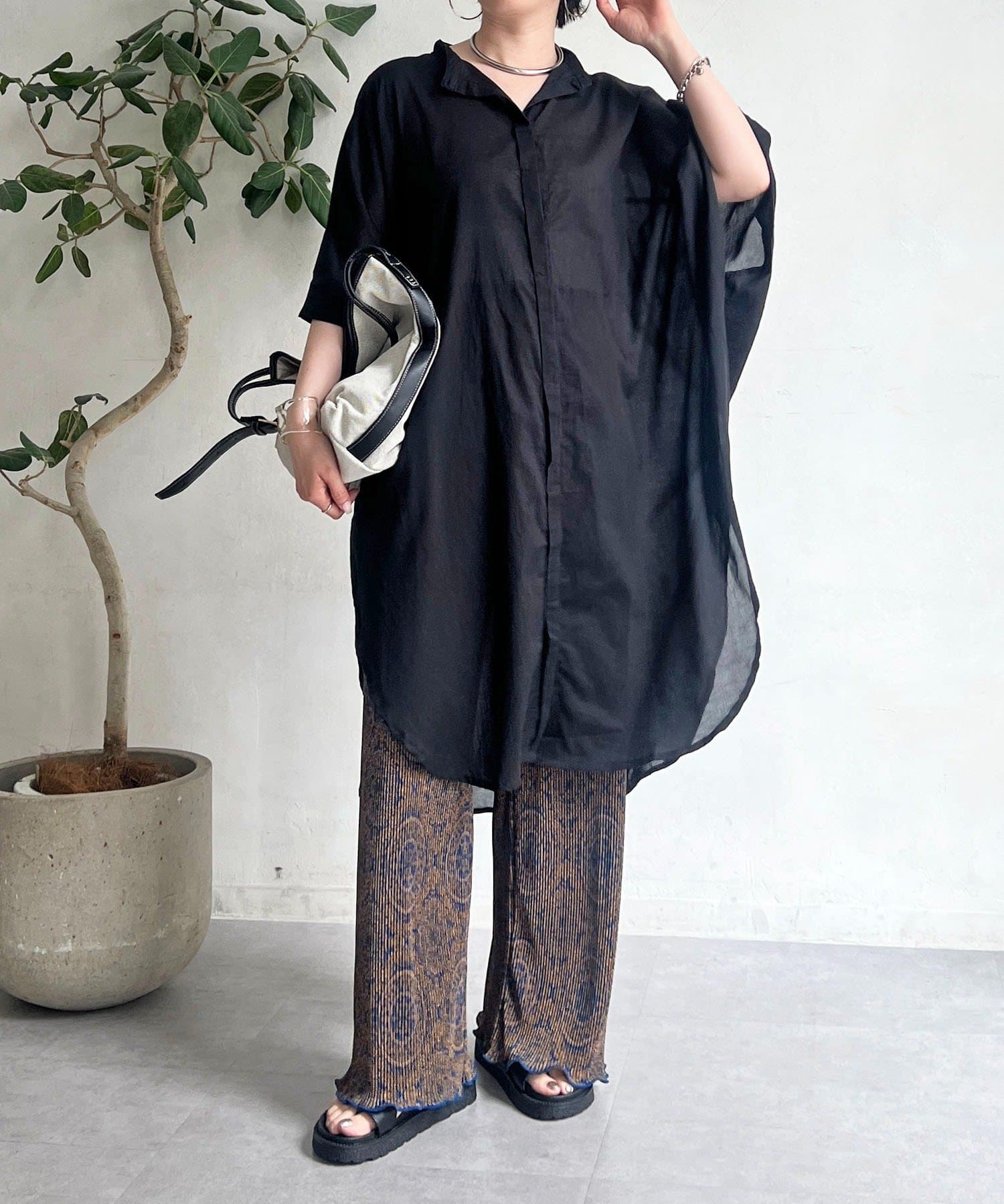ビアズリー チェックシャツワンピース オーバーサイズ ホワイト ビアズリー チェックシャツワンピース オーバーサイズ ホワイト